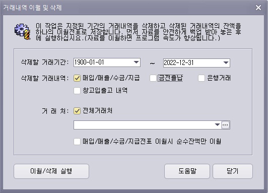 [»èÁ¦/ÀÌ¿ù ½ÇÇà] ¹öưÀ» ½ÇÇàÇÏ¸é °Å·¡³»¿ªÀ» »èÁ¦Çϰí ÀÌ¿ùÇÕ´Ï´Ù. »èÁ¦/ÀÌ¿ùÀÛ¾÷À» ½ÇÇàÇÒ ¶§ ÄÄÇ»ÅÍÀÇ ¼Óµµ ÀÚ·áÀÇ ¾ç¿¡ µû¶ó ´Ù¼Ò ½Ã°£ÀÌ ¼Ò¿äµË´Ï´Ù.